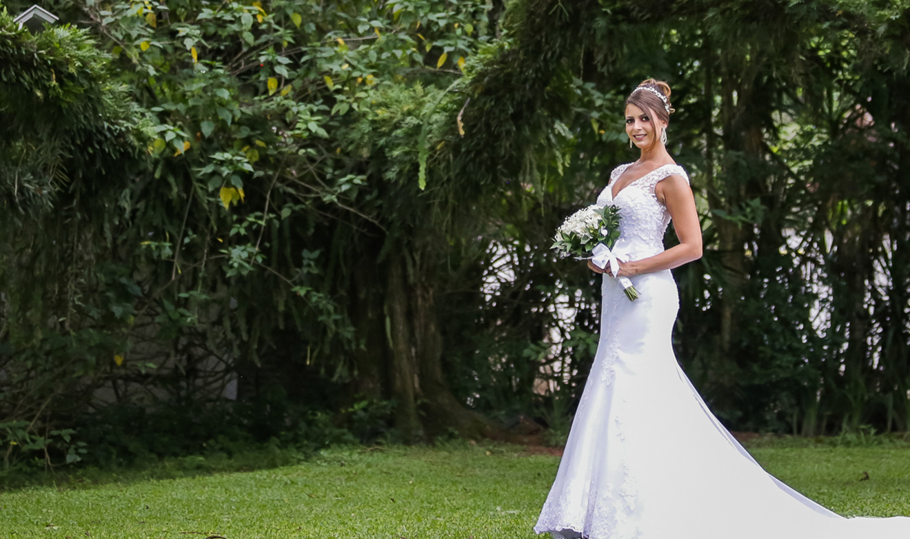 “O vestido dos meus sonhos encontrei na Miriane Noivas. Desde o primeiro atendimento, foi amor à primeira vista com aquele modelo, e até o grande dia fui acompanhada com carinho e dedicação.